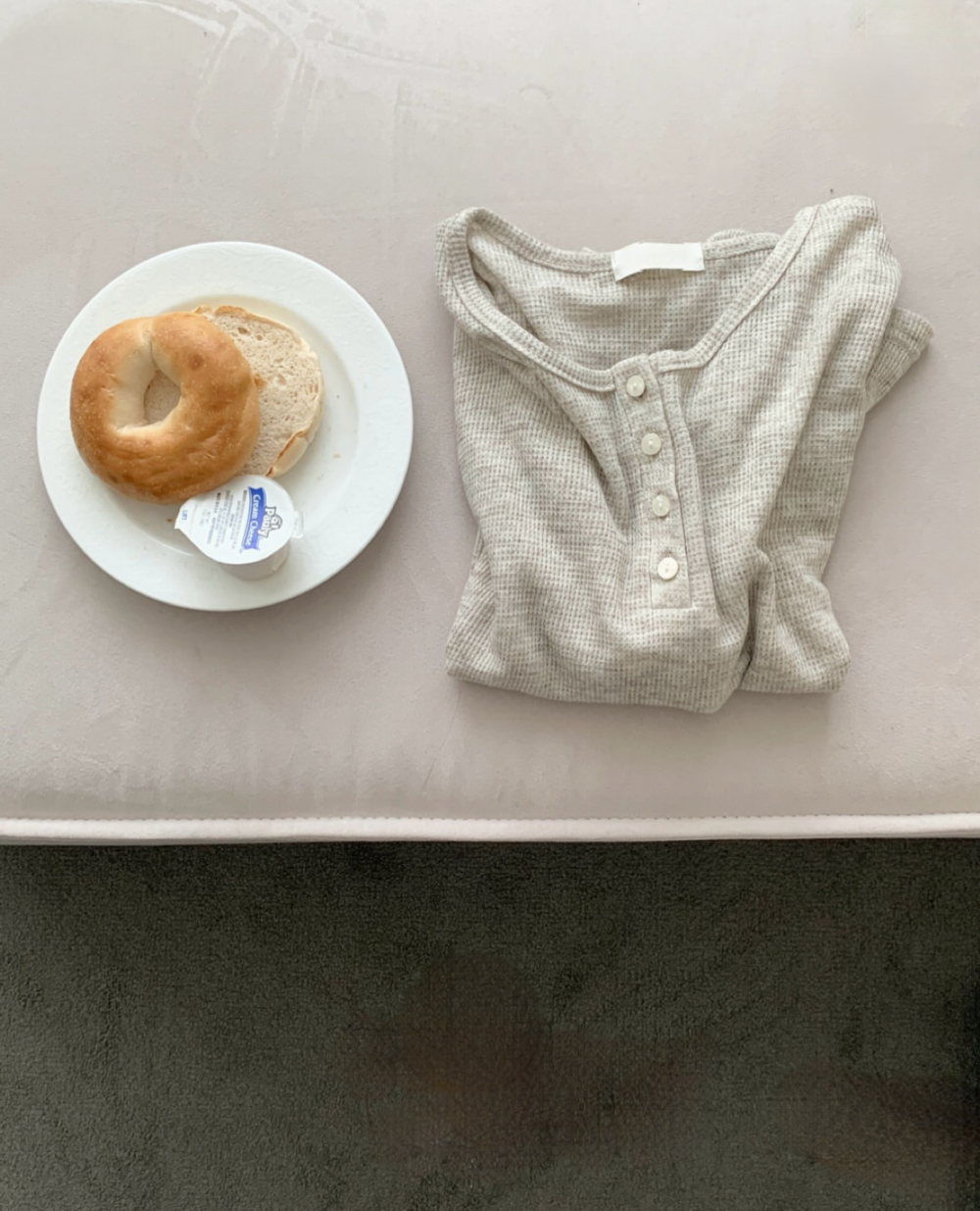 소매도 길어서 손등 살짝 덮는 디테일 , 그리고 잔잔한 와플 패턴이 자세히 보면 보이는데
