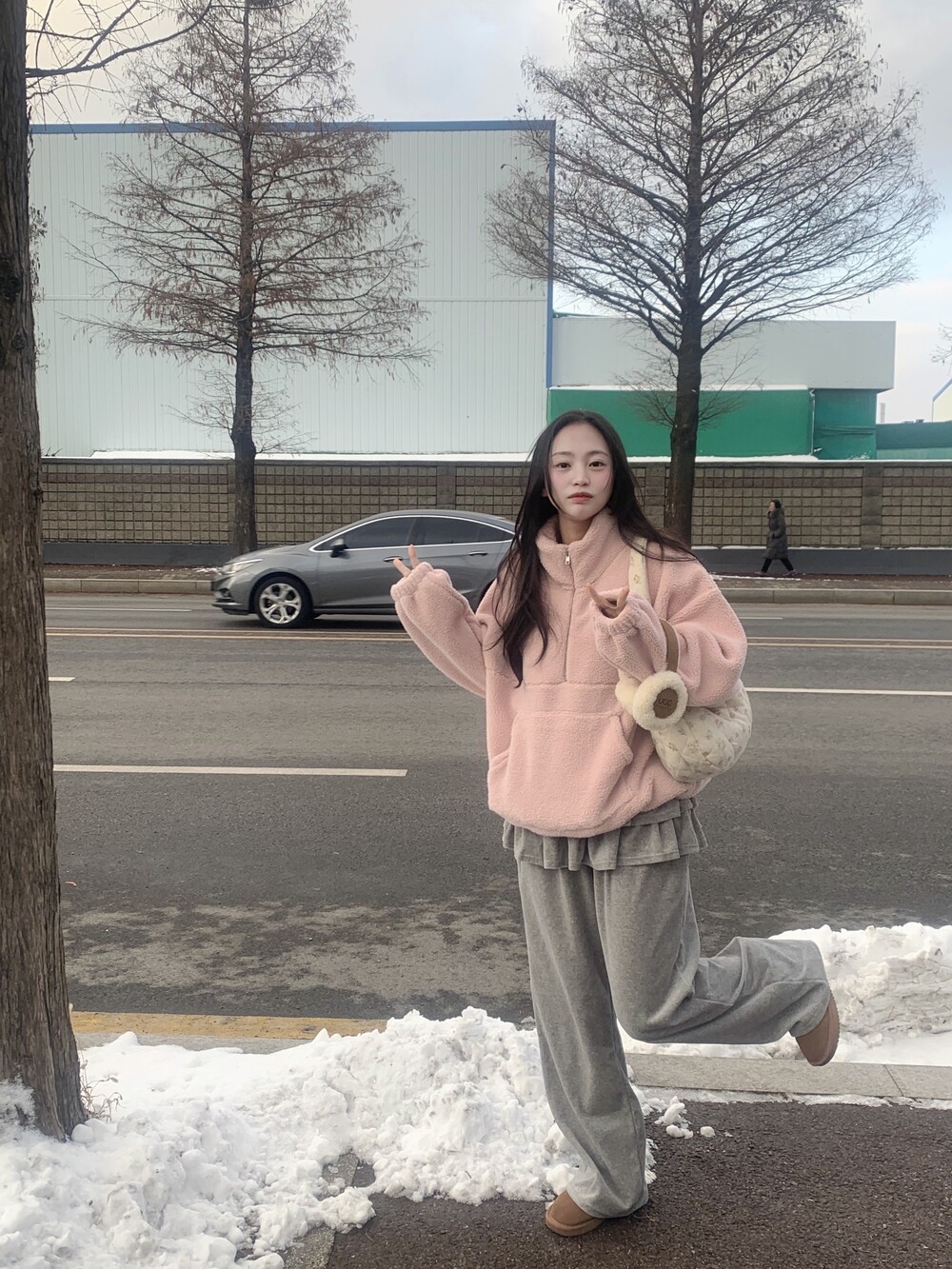밑위에 여유가 있어 하이웨이스트로도 로우웨이스트로도 연출이 가능하답니다 . 저처럼 위에 아방한 핏의 상의와 코디해주셔도 좋지만 딱붙는 가디건이나 버튼티 같은 기본 아이템들과도 두루두루 어울려요 .