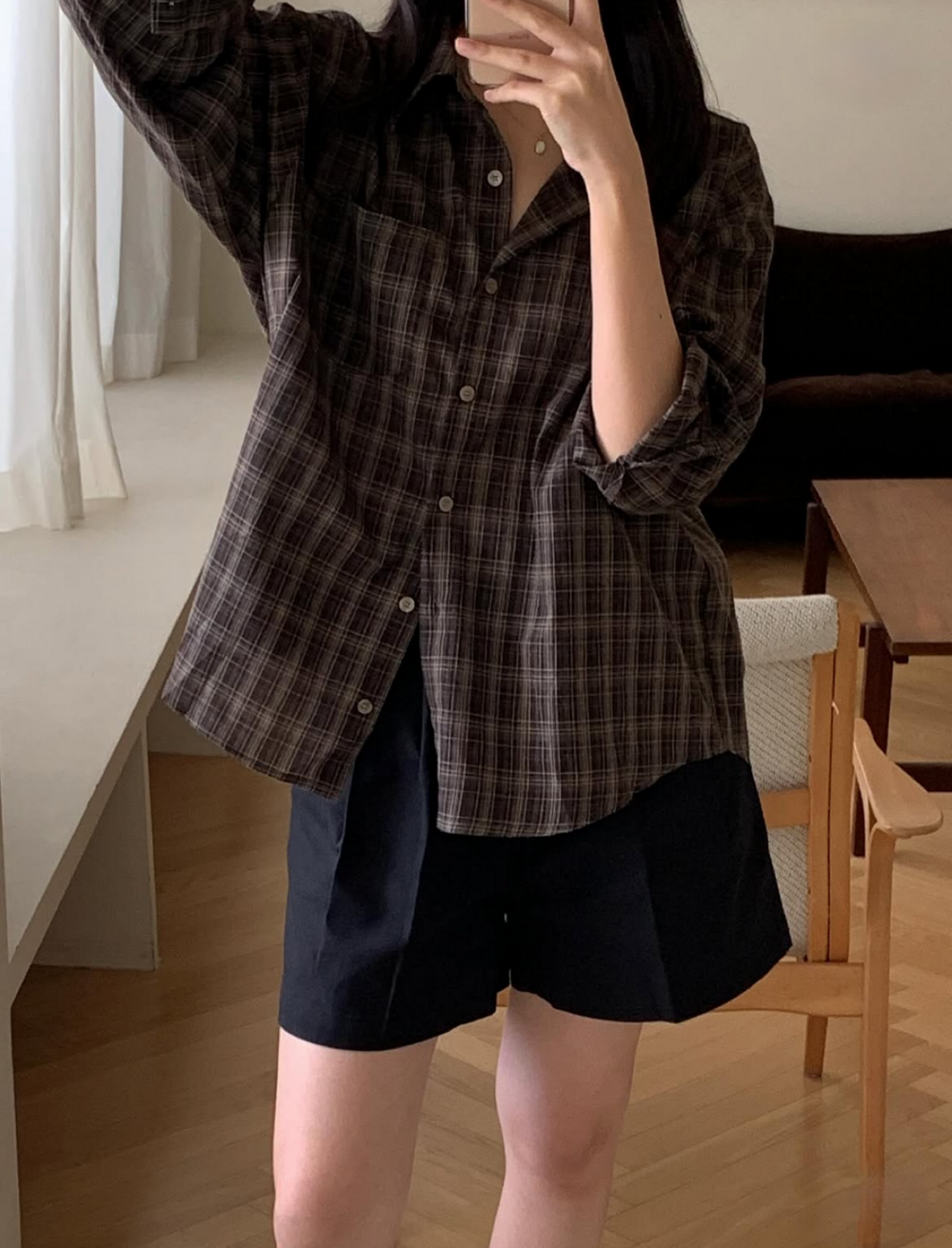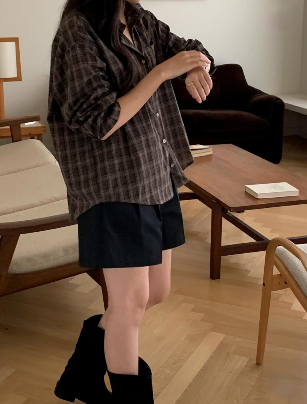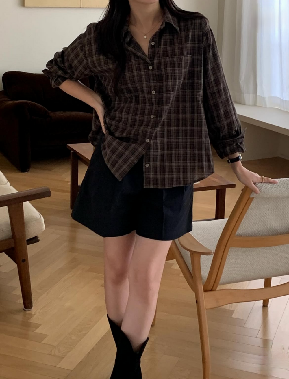 가을과 어울리는 색감의 체스트넛 셔츠 .