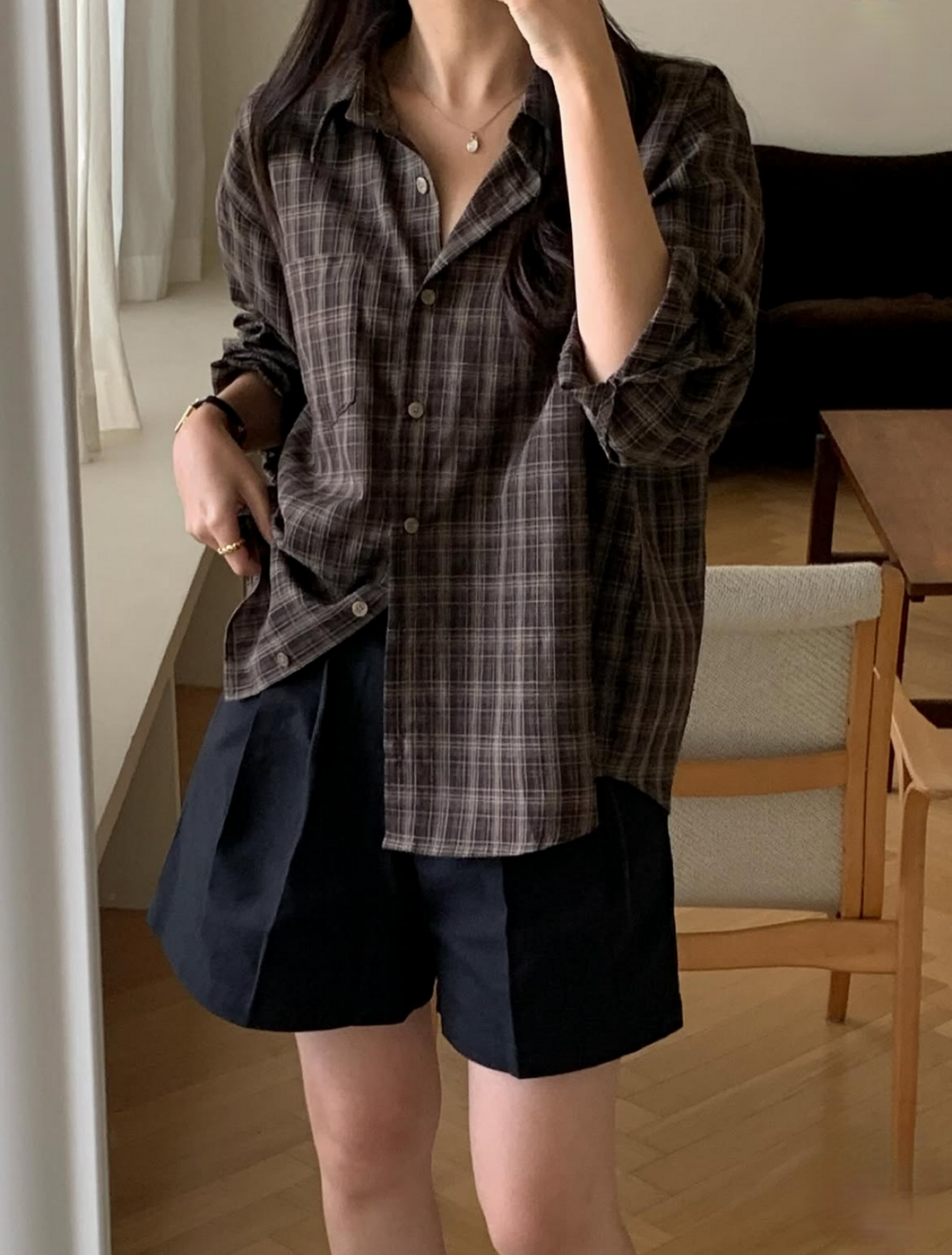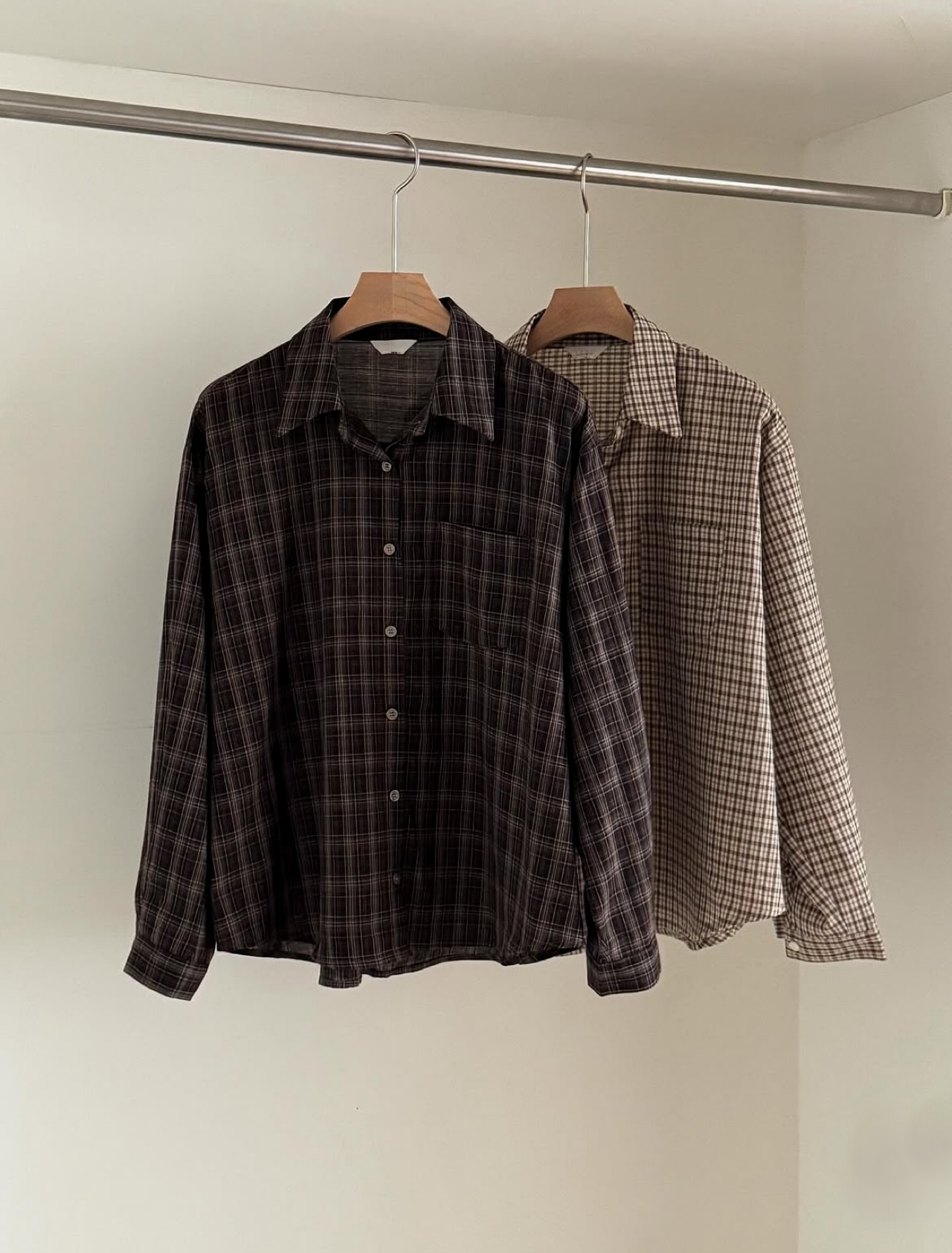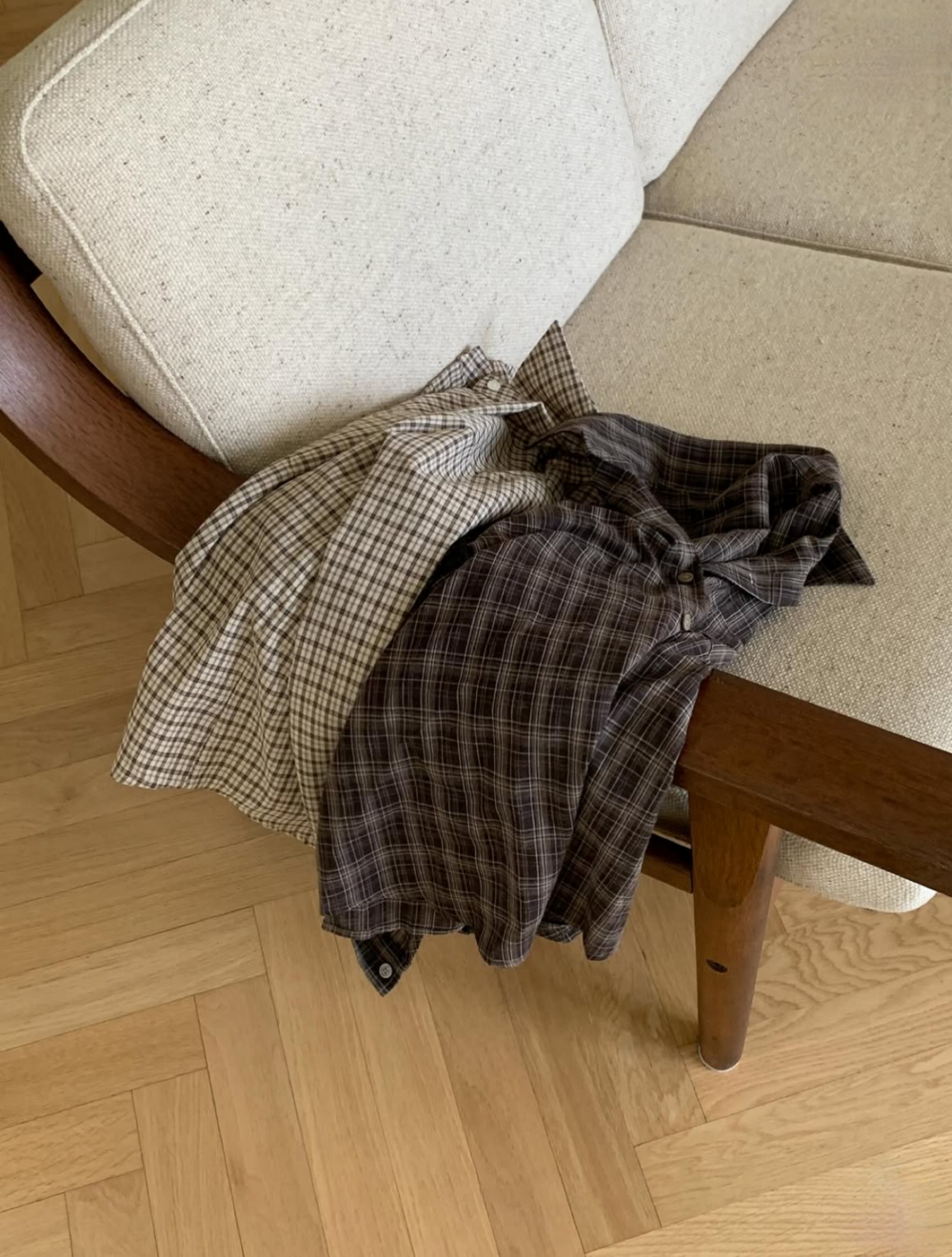 가을과 어울리는 색감의 체스트넛 셔츠 .