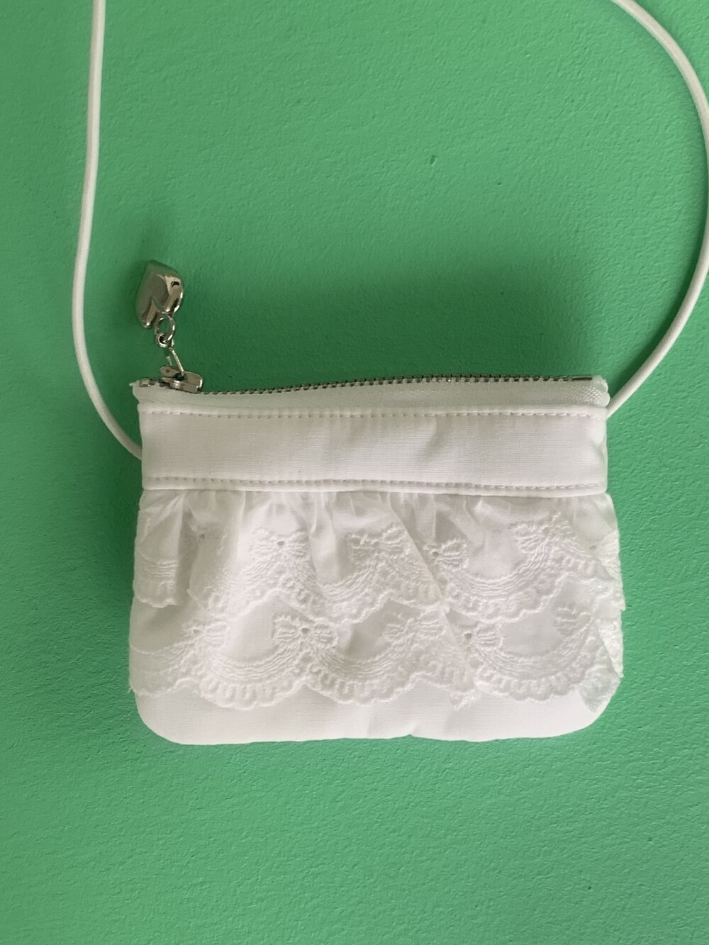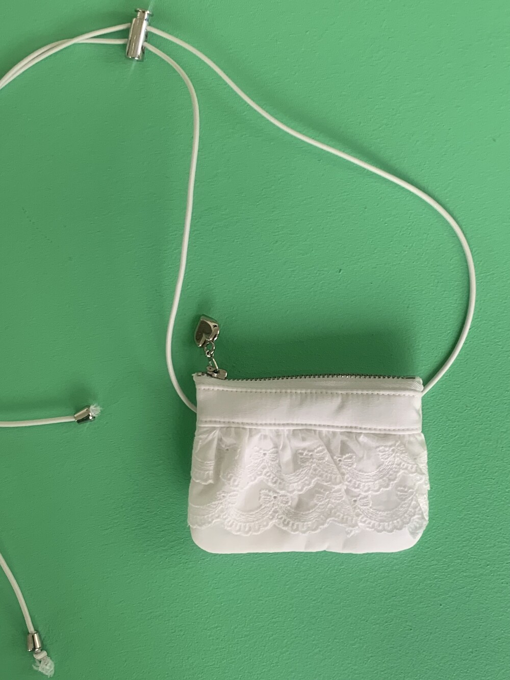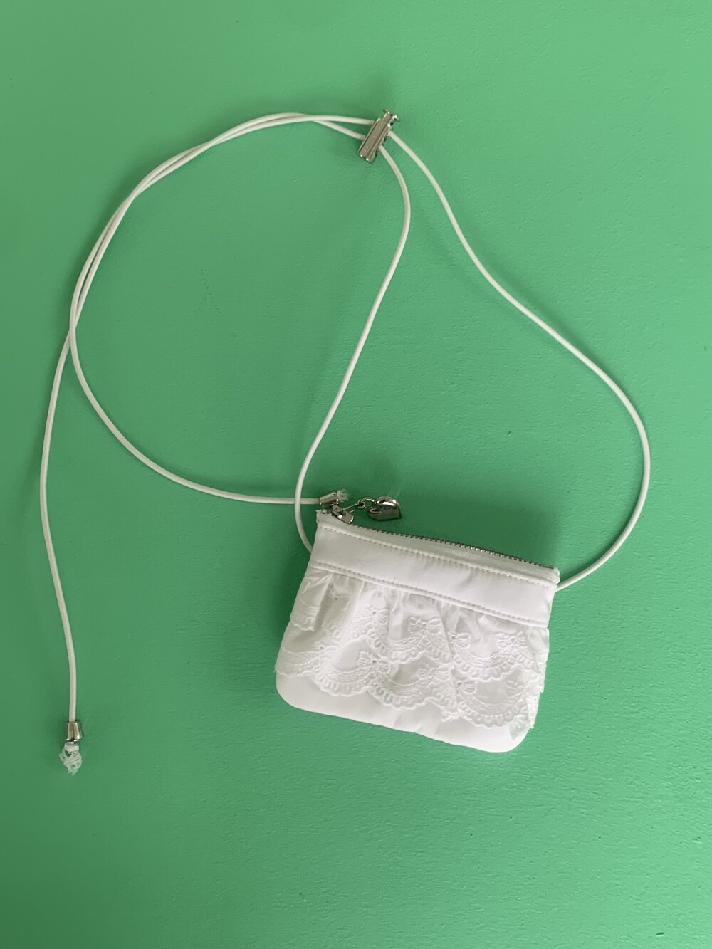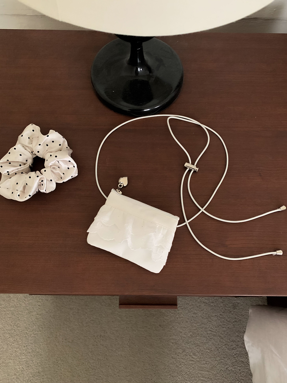 하트 지퍼참과 아일렛 뿅뿅 레이스 디테일의 생크림 벨트백 ♡⃛⋆⁺