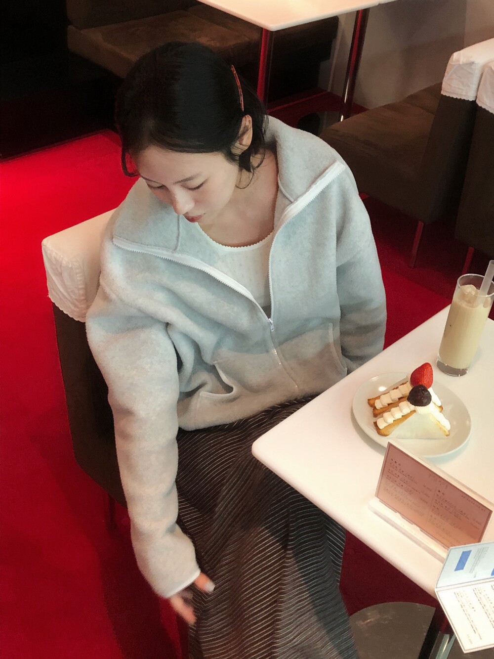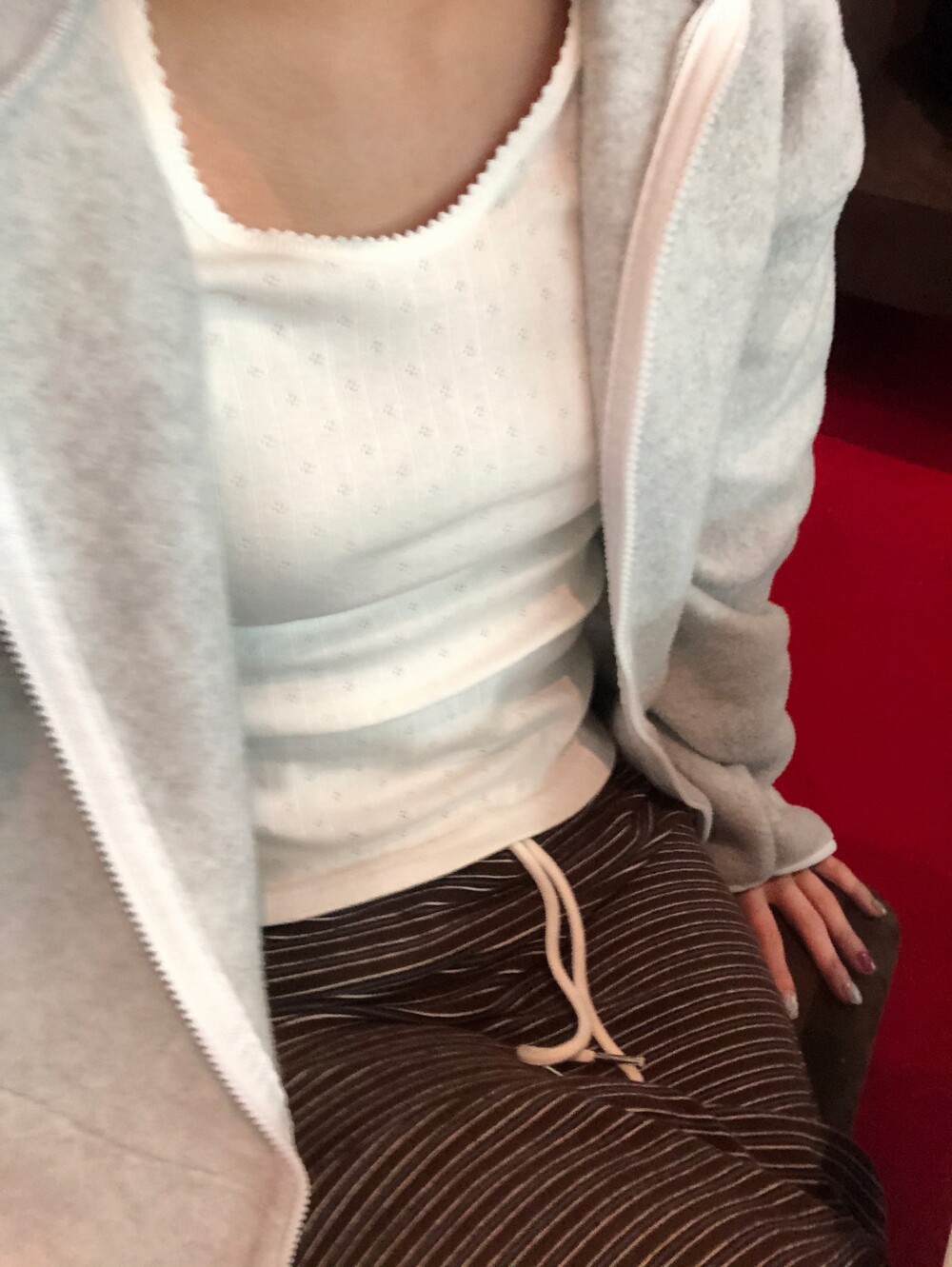날이 조금 더 풀리면 슬리브리스나 반팔티에 가디건 코디도 여리여리하게 예쁠 것 같아요 .
