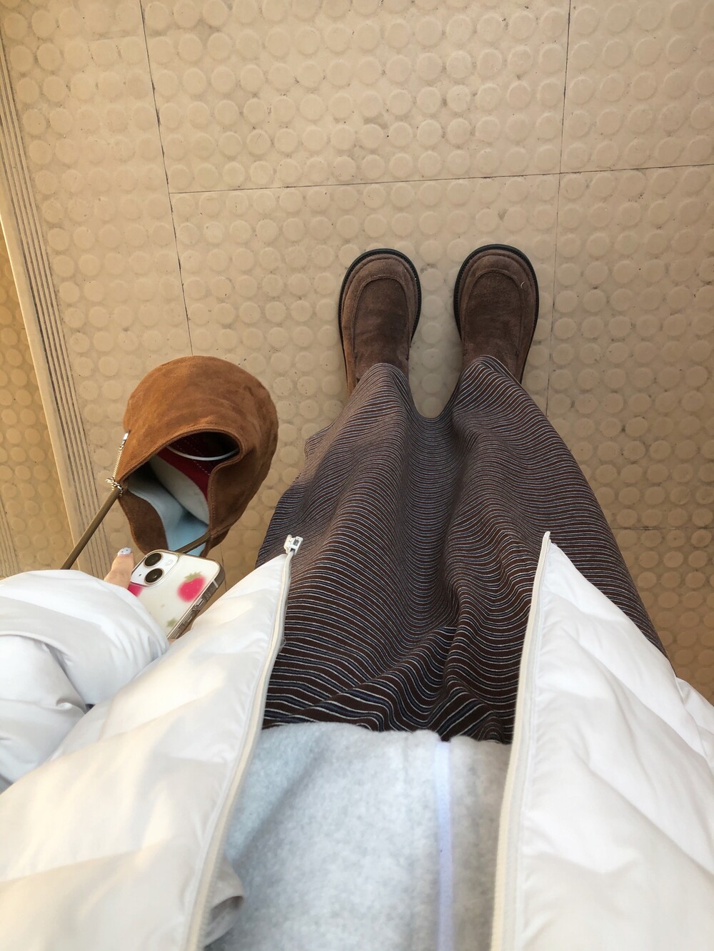 워낙 불편한건 싫은지라 편안하게 입을 수 있는 면소재의 롱 스커트를 데려왔어요 .