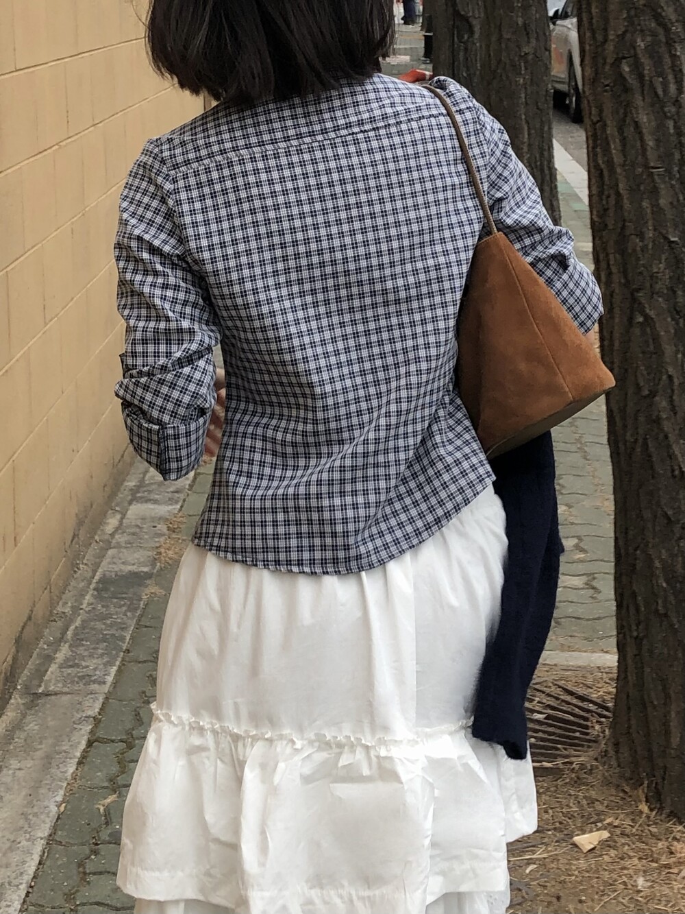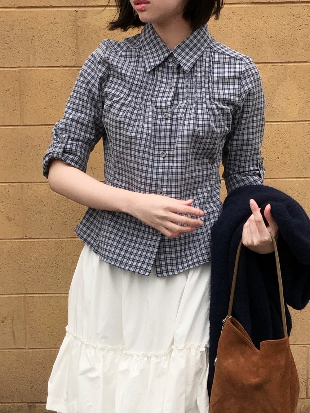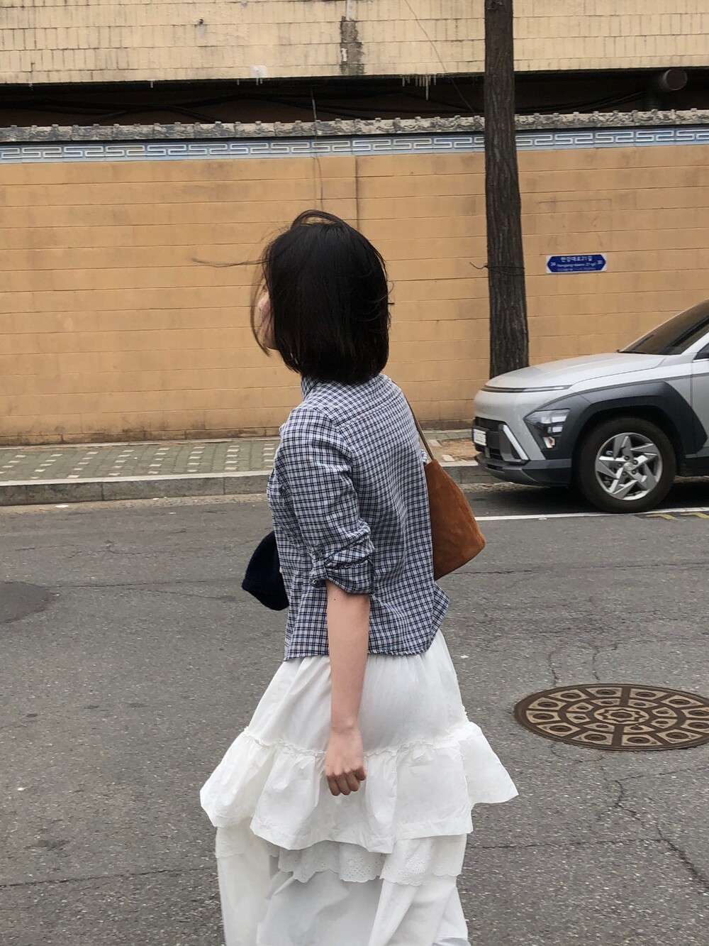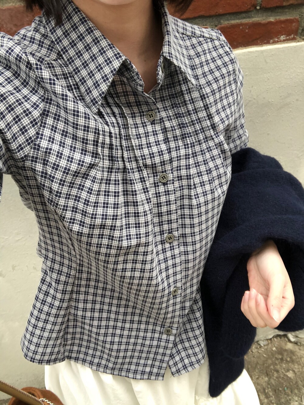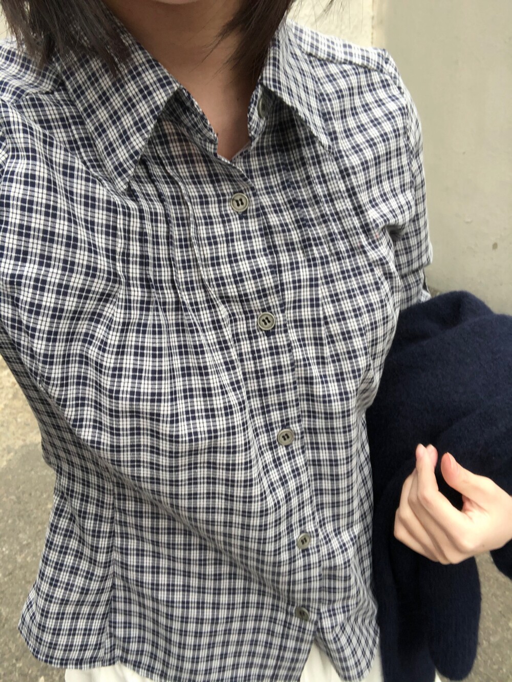 핀턱 디테일과 군더더기 없는 깔끔한 실루엣으로 조금은 특별한 체크 셔츠랄까요 .