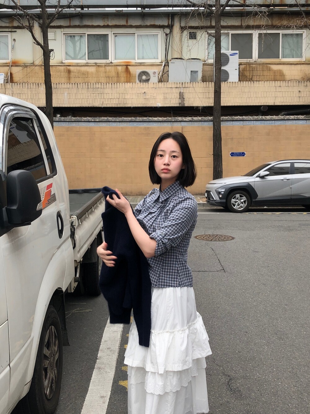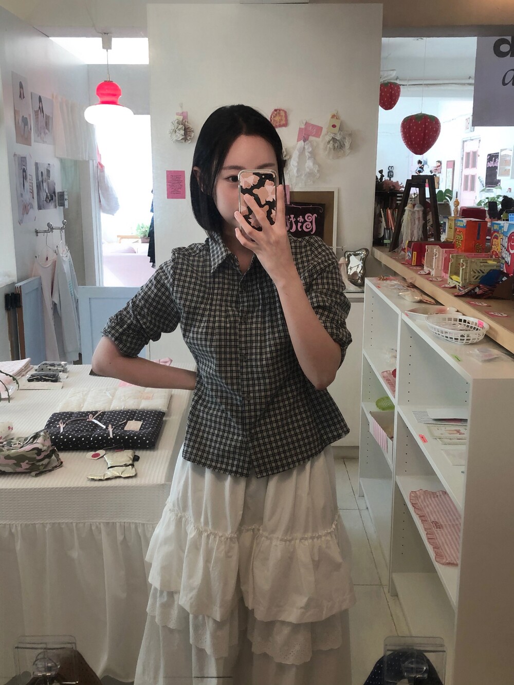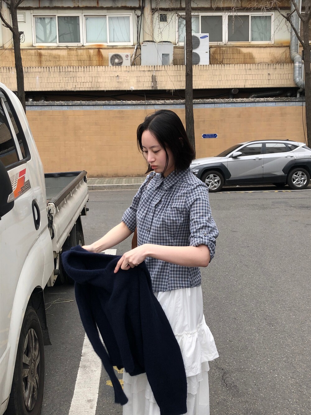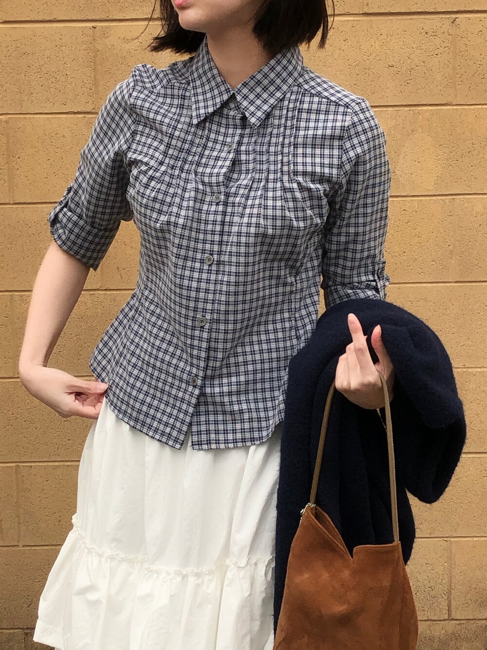 핀턱 디테일과 군더더기 없는 깔끔한 실루엣으로 조금은 특별한 체크 셔츠랄까요 .