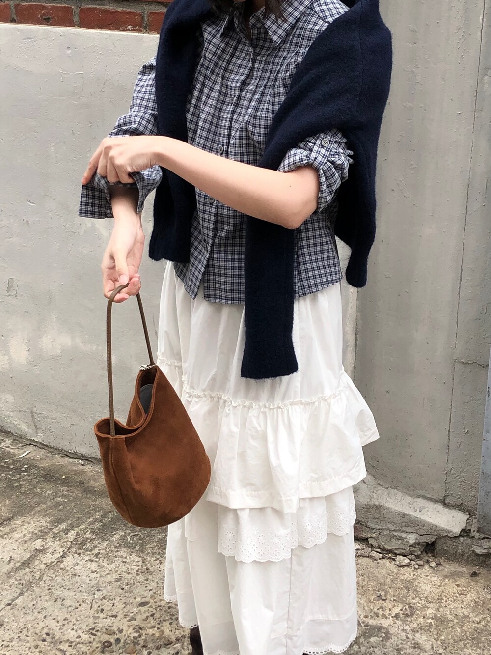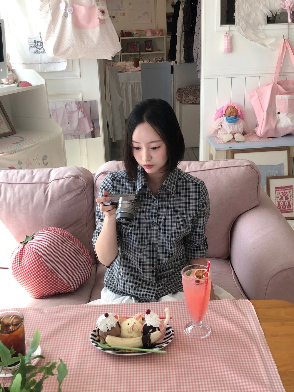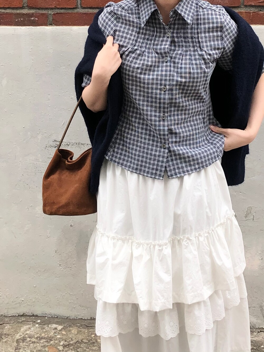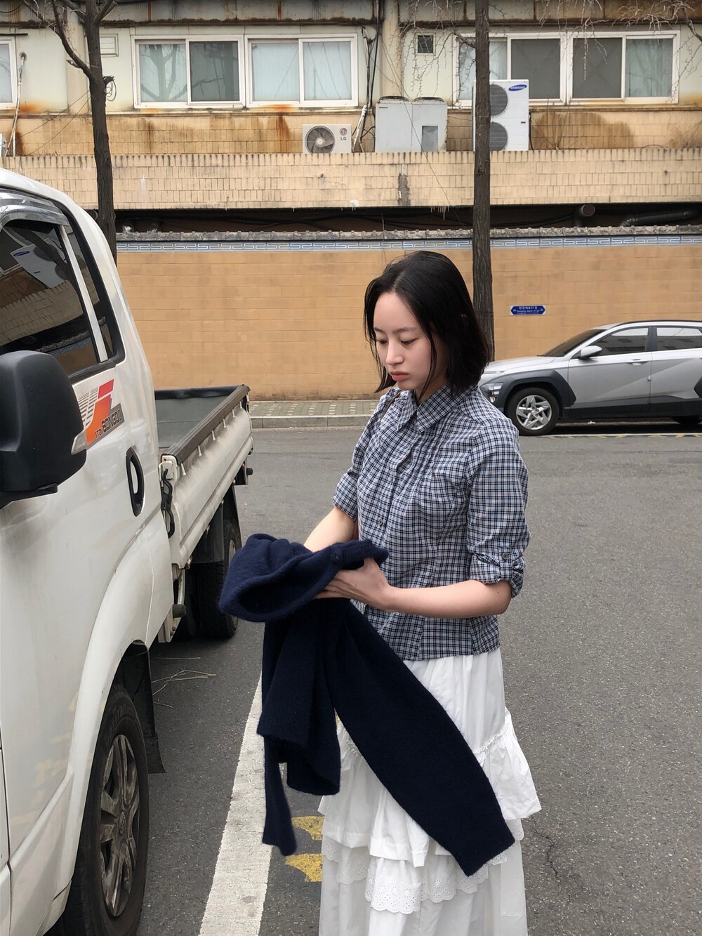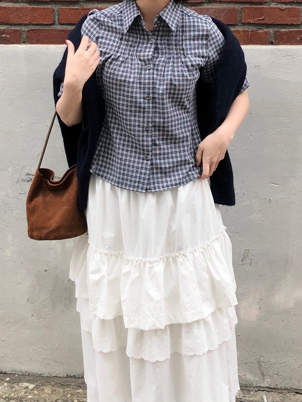 핀턱 디테일과 군더더기 없는 깔끔한 실루엣으로 조금은 특별한 체크 셔츠랄까요 .