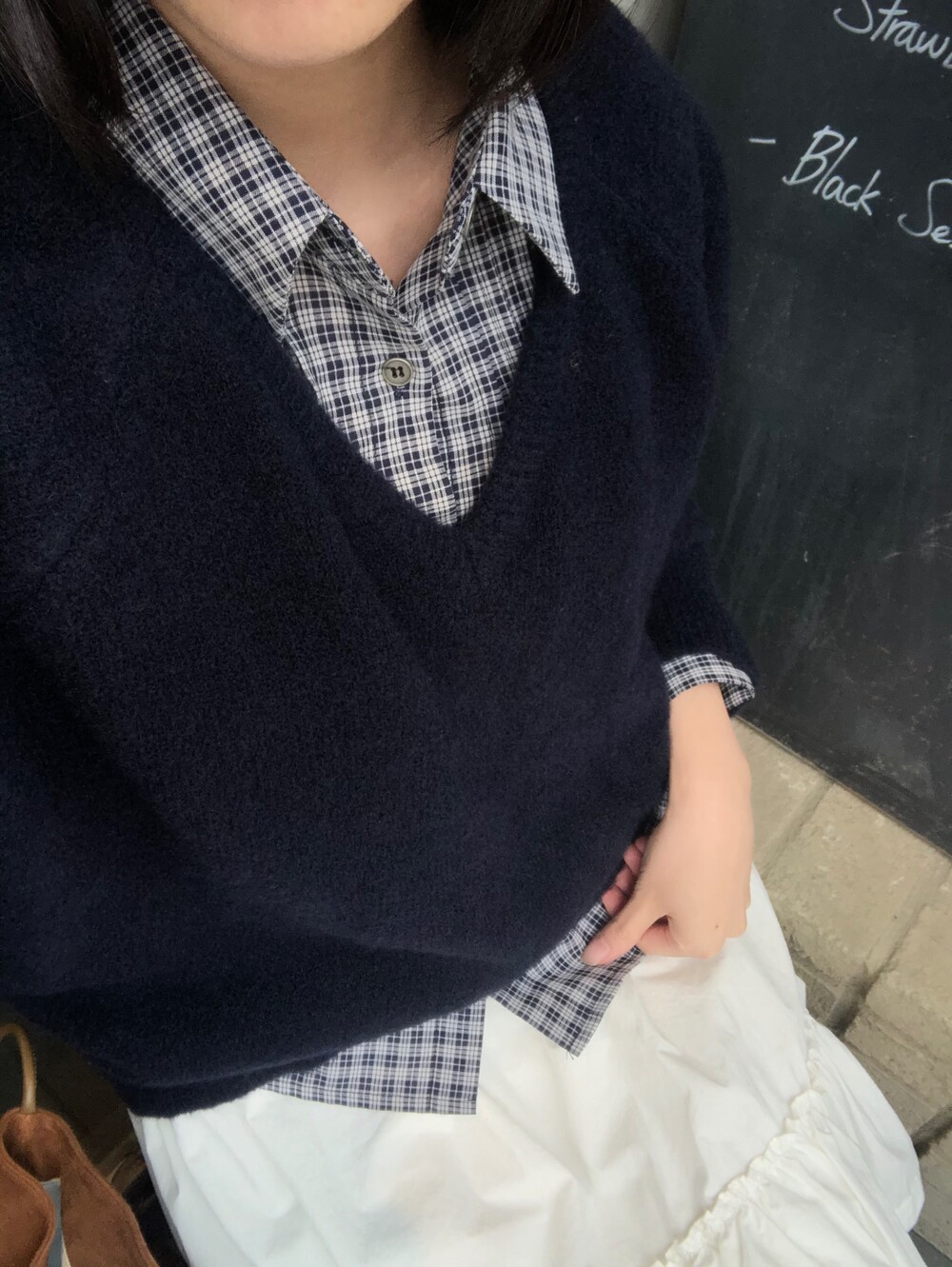 단품으로는 물론 , 가디건이나 니트 안에 레이어드해도 좋답니다 .