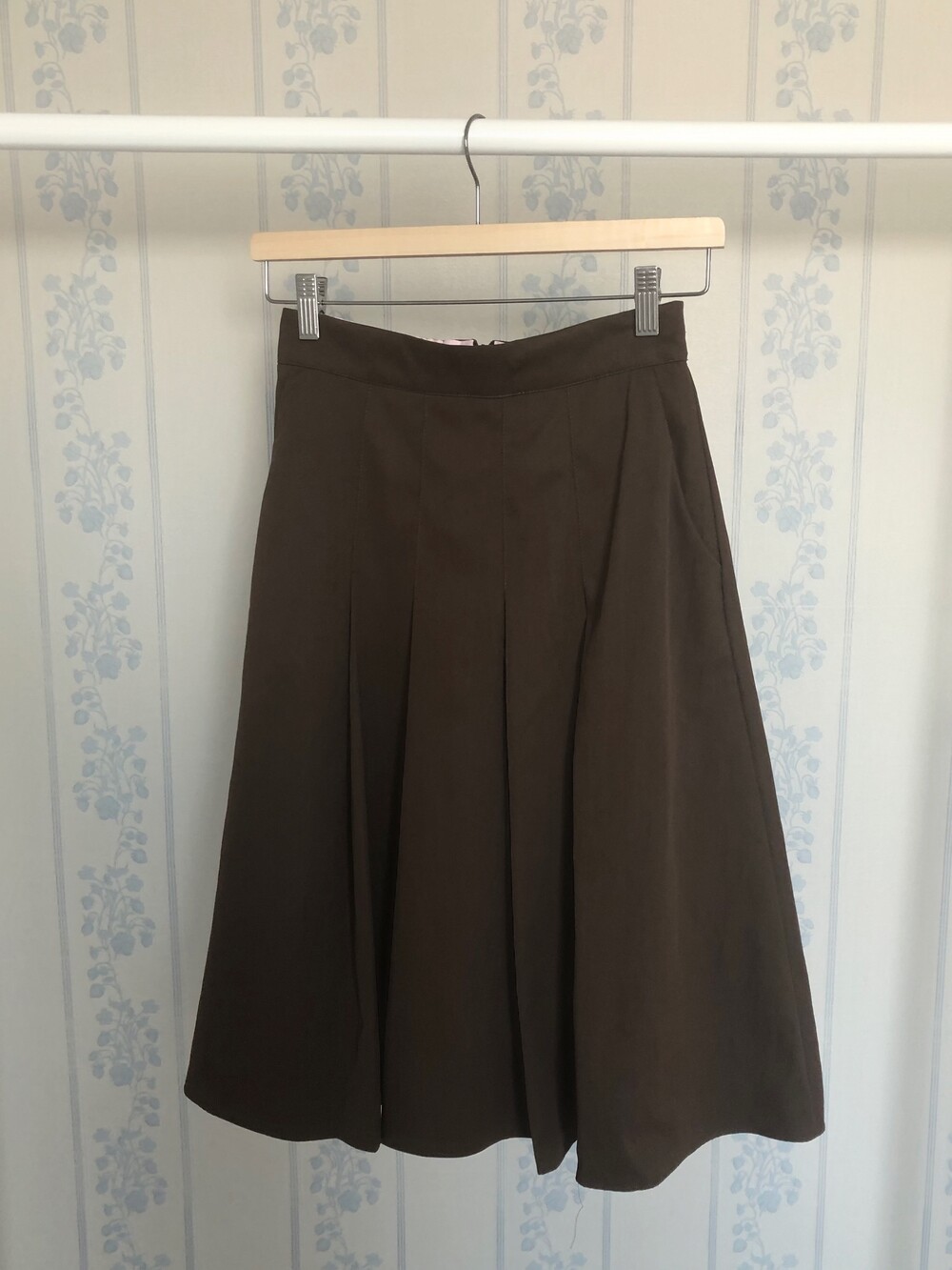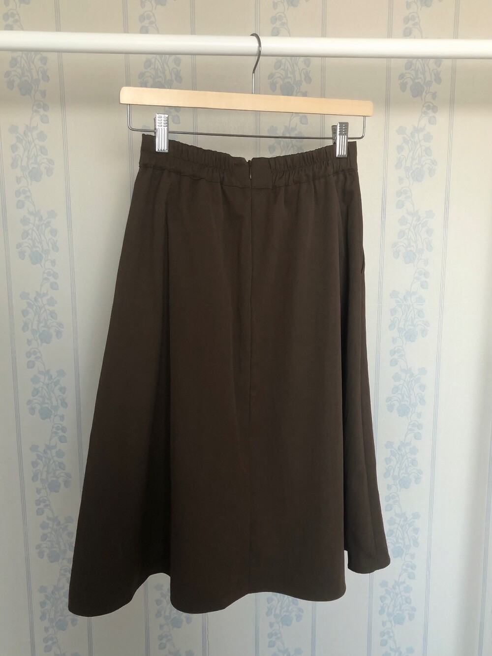 뒷밴딩에 지퍼로 이루어져있고 , 골반라인까지는 플리츠 주름을 박아두어 좀더 세련된 느낌이 드는데