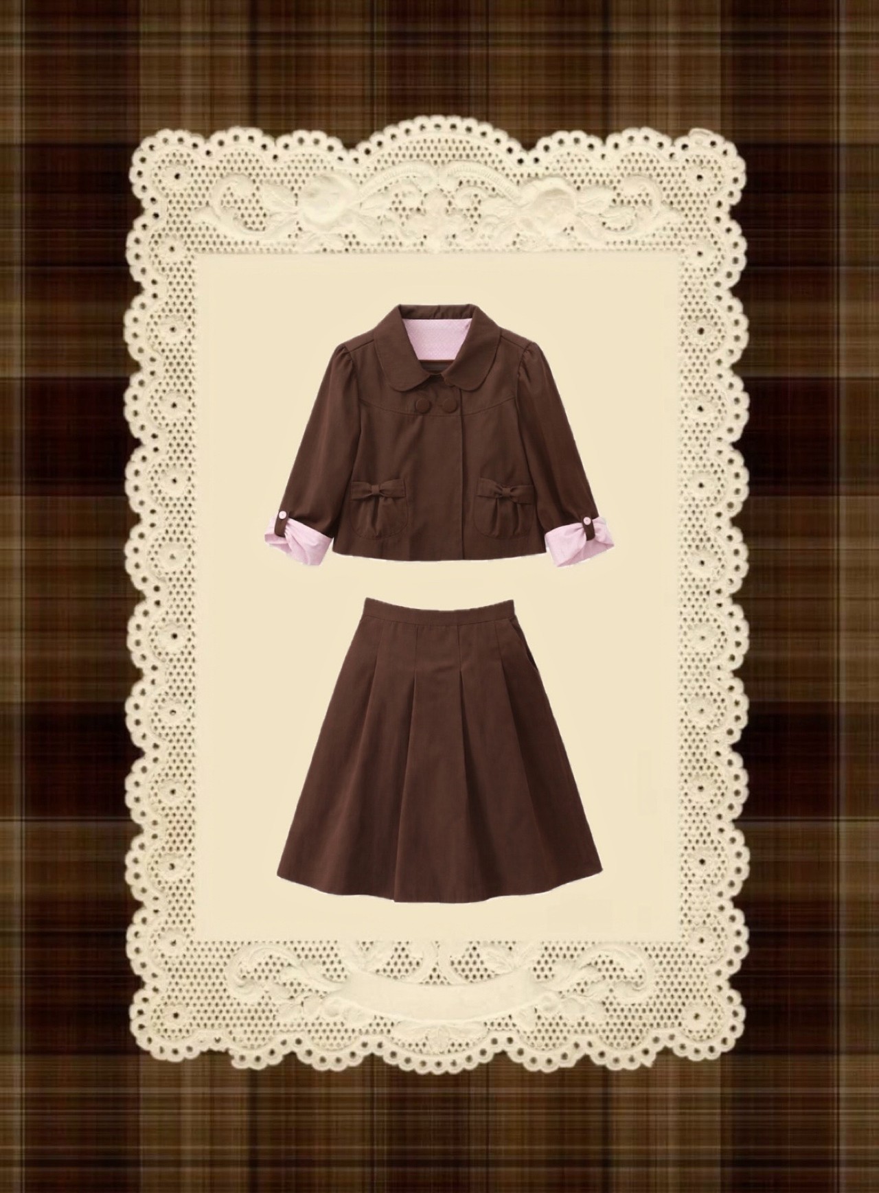 캐릭터 슈가버니즈도 떠오르고 , 향긋한 딸기와 달콤한 초코가 함께하는 디저트도 생각나는 사랑스러운 셋업입니다 .