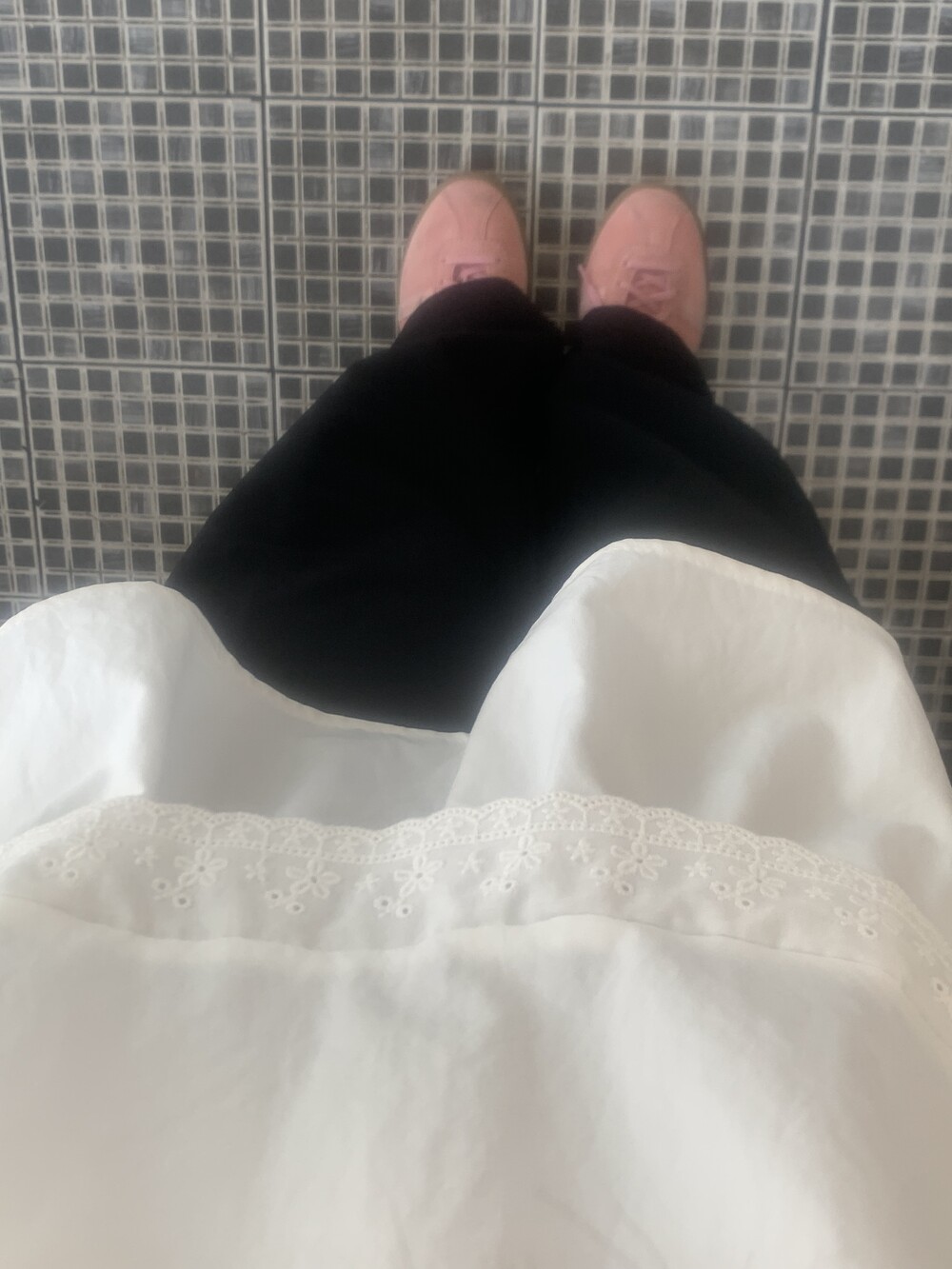 기장도 살짝 길어서 팬츠랑 코디하기 좋고 , ( 저는 썸머 팬츠 블랙과 코디 했어요. ) 프릴 반바지나 같은 컬러 화이트 미니 스커트와 코디해보셔도 좋을 것 같아요 .