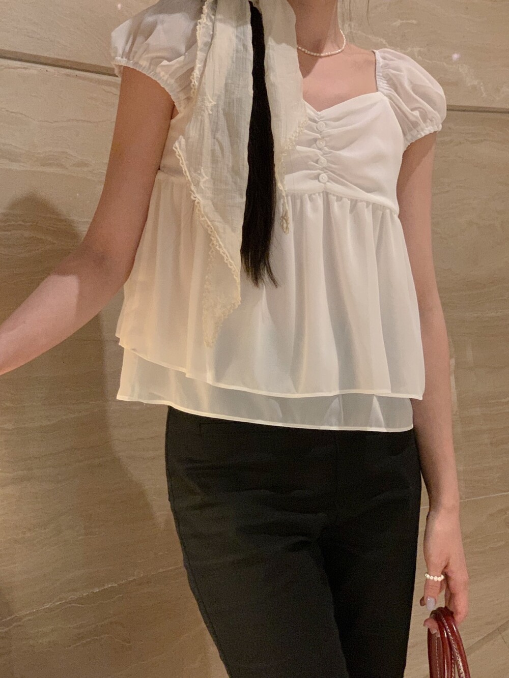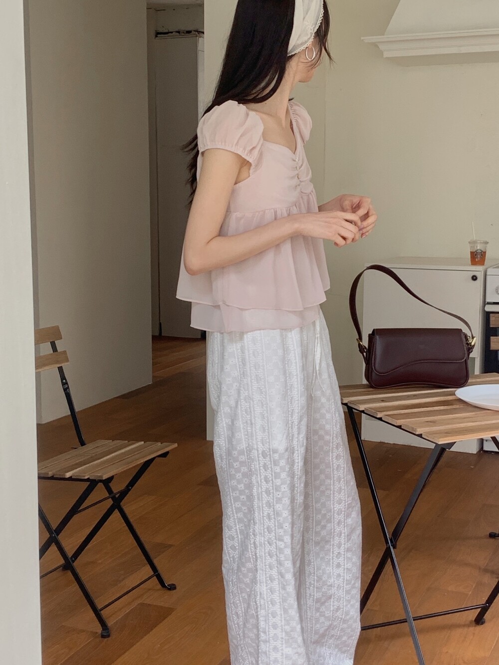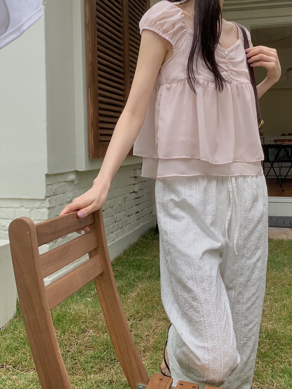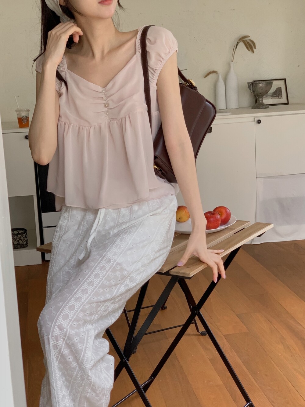흐르듯 떨어지는 쉬폰 원단이라서 피부에 닿는 느낌도 시원하고 ,