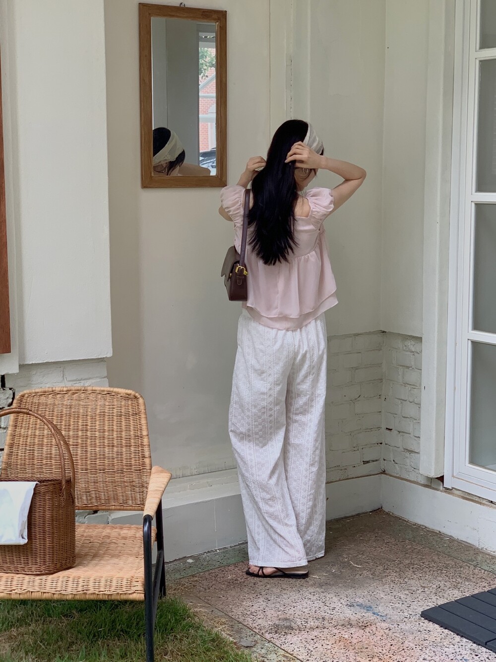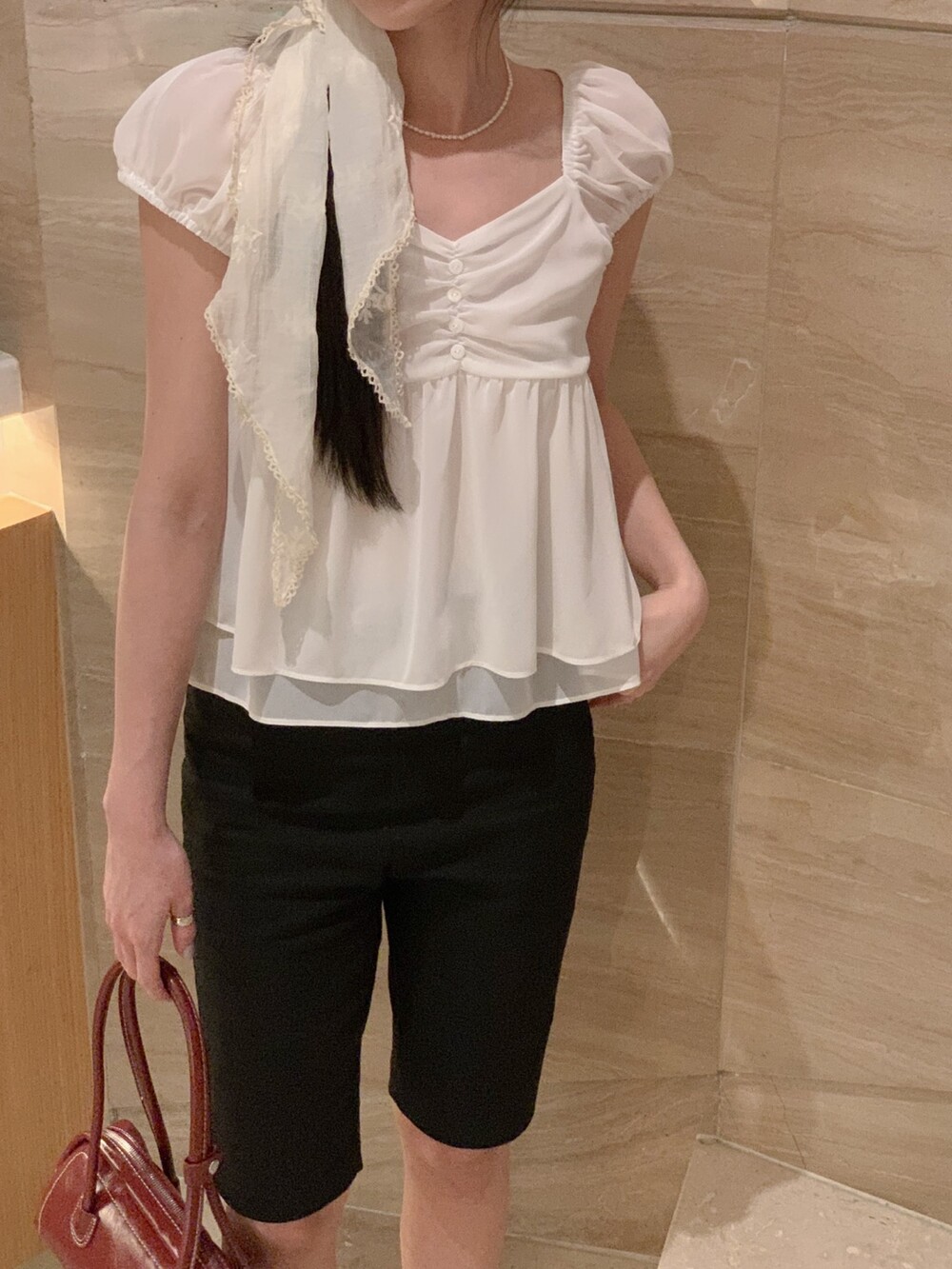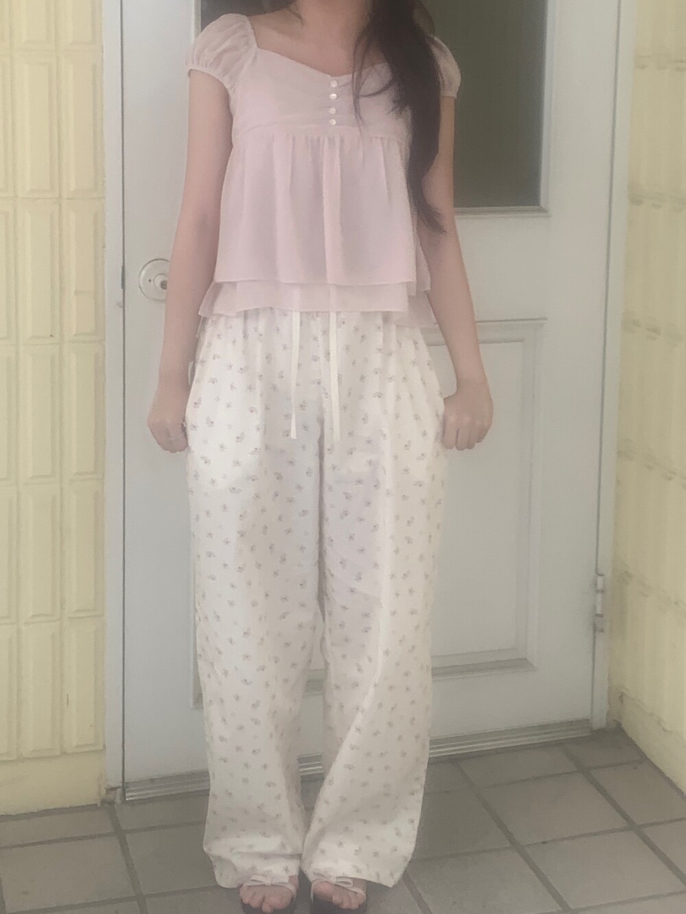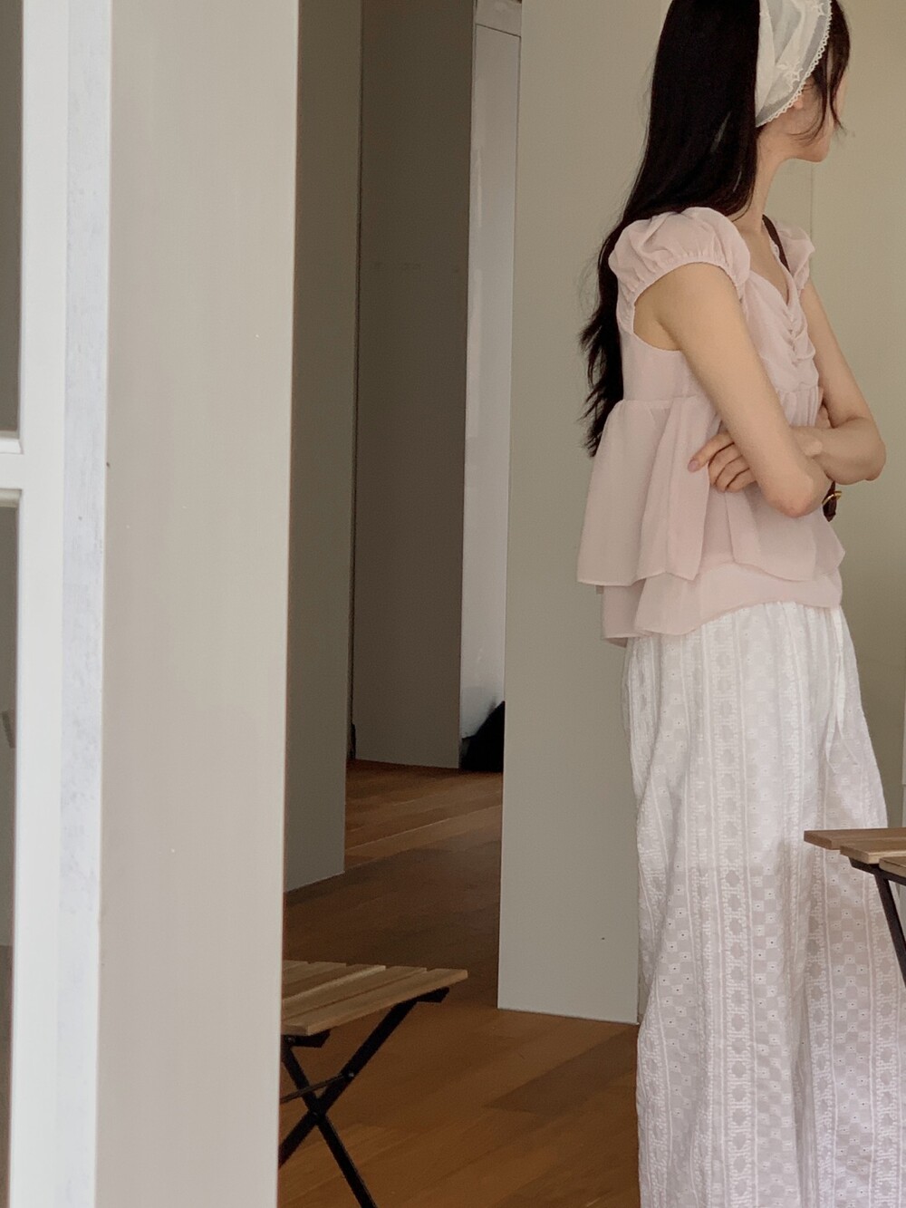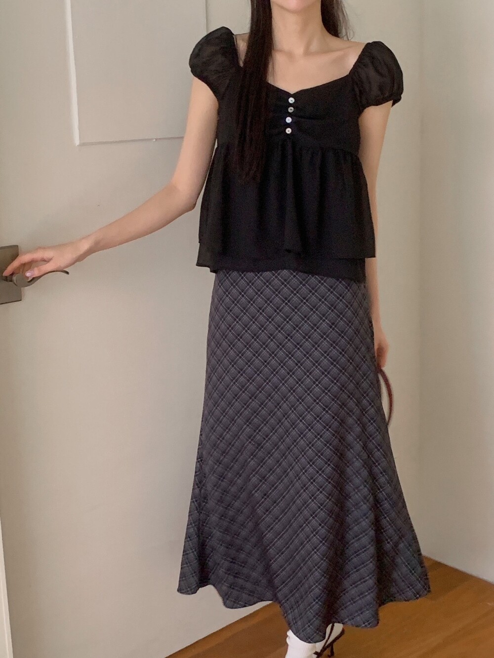 흐르듯 떨어지는 쉬폰 원단이라서 피부에 닿는 느낌도 시원하고 ,