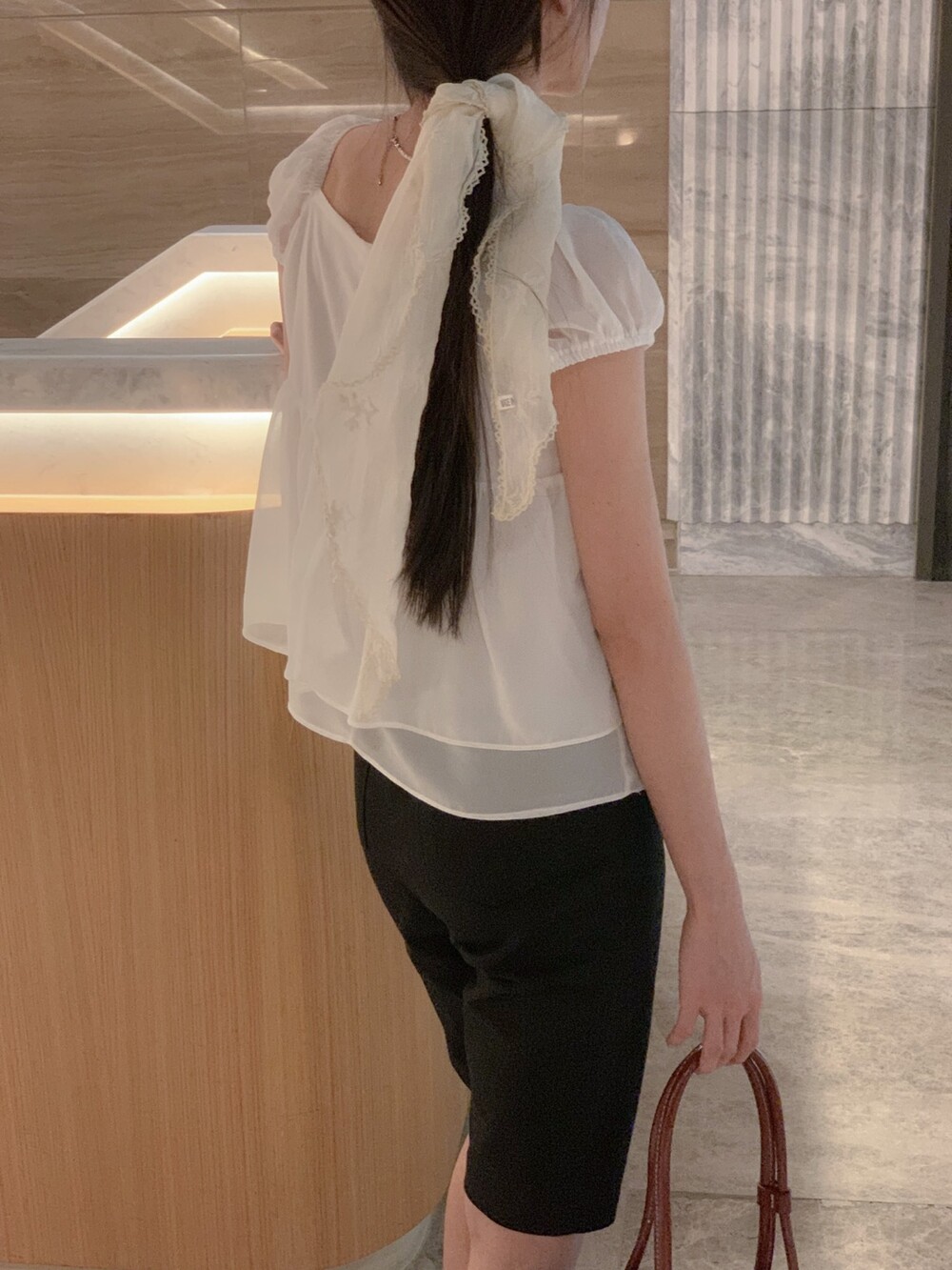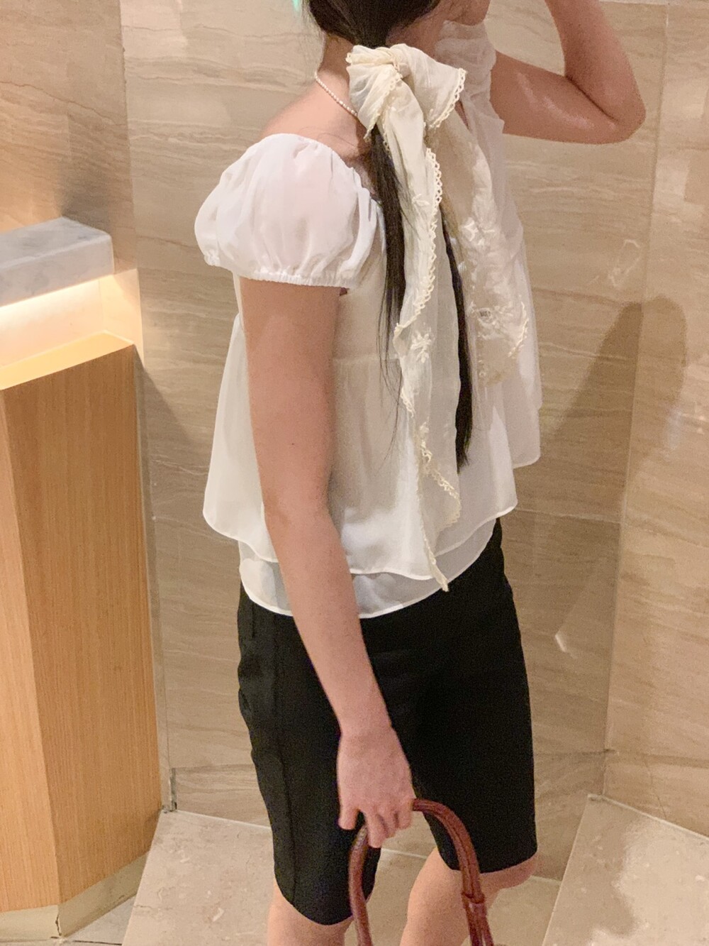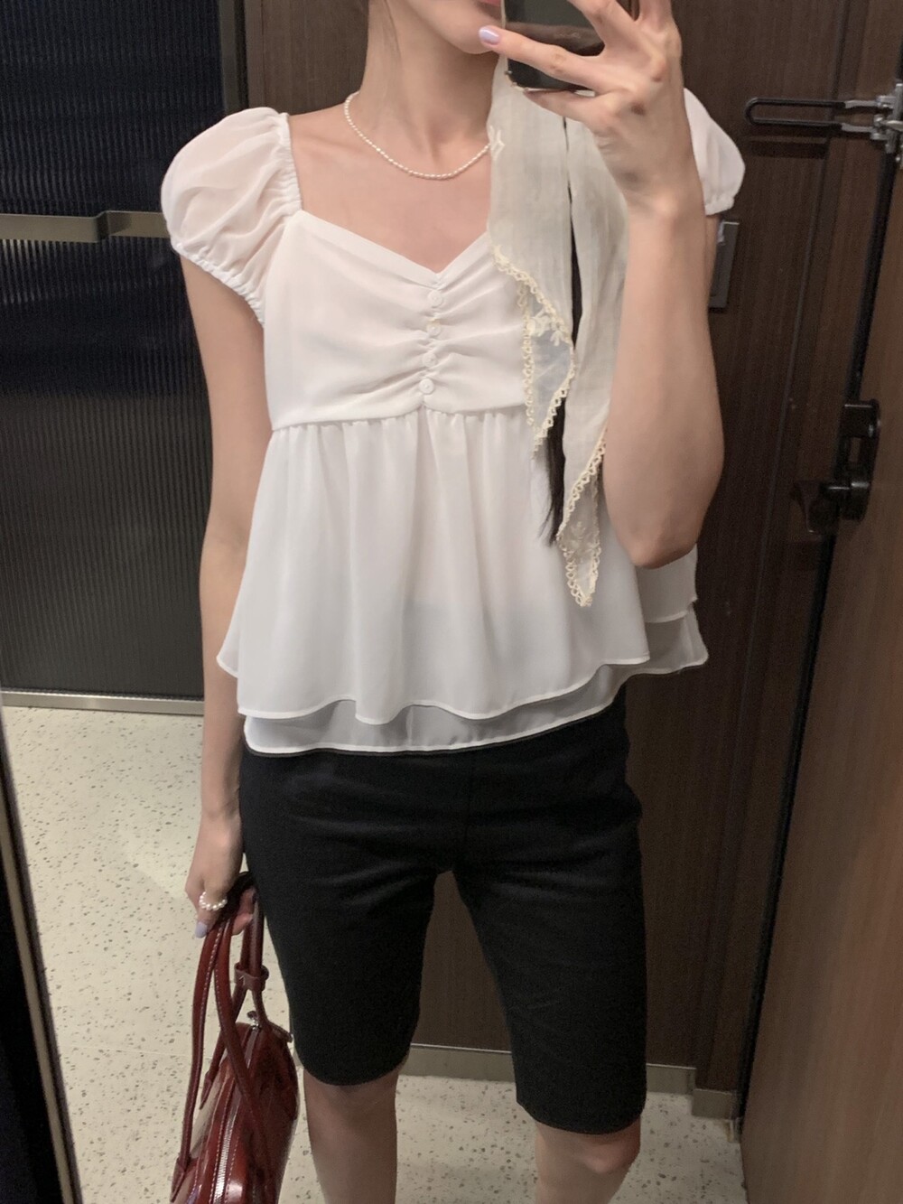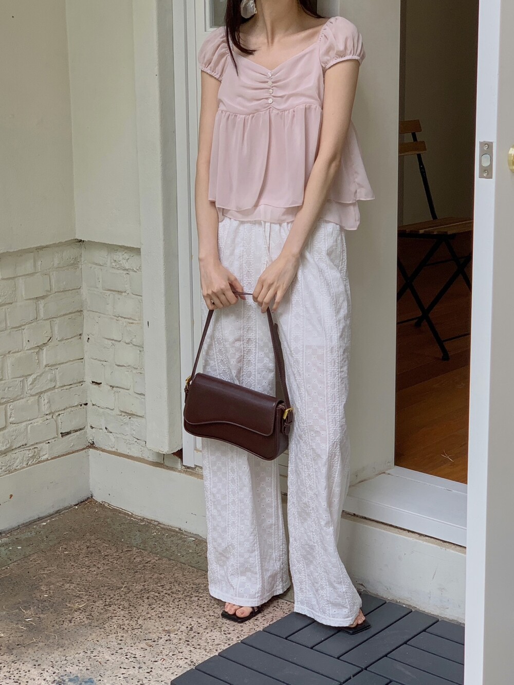 흐르듯 떨어지는 쉬폰 원단이라서 피부에 닿는 느낌도 시원하고 ,
