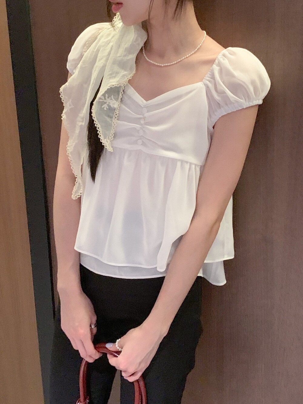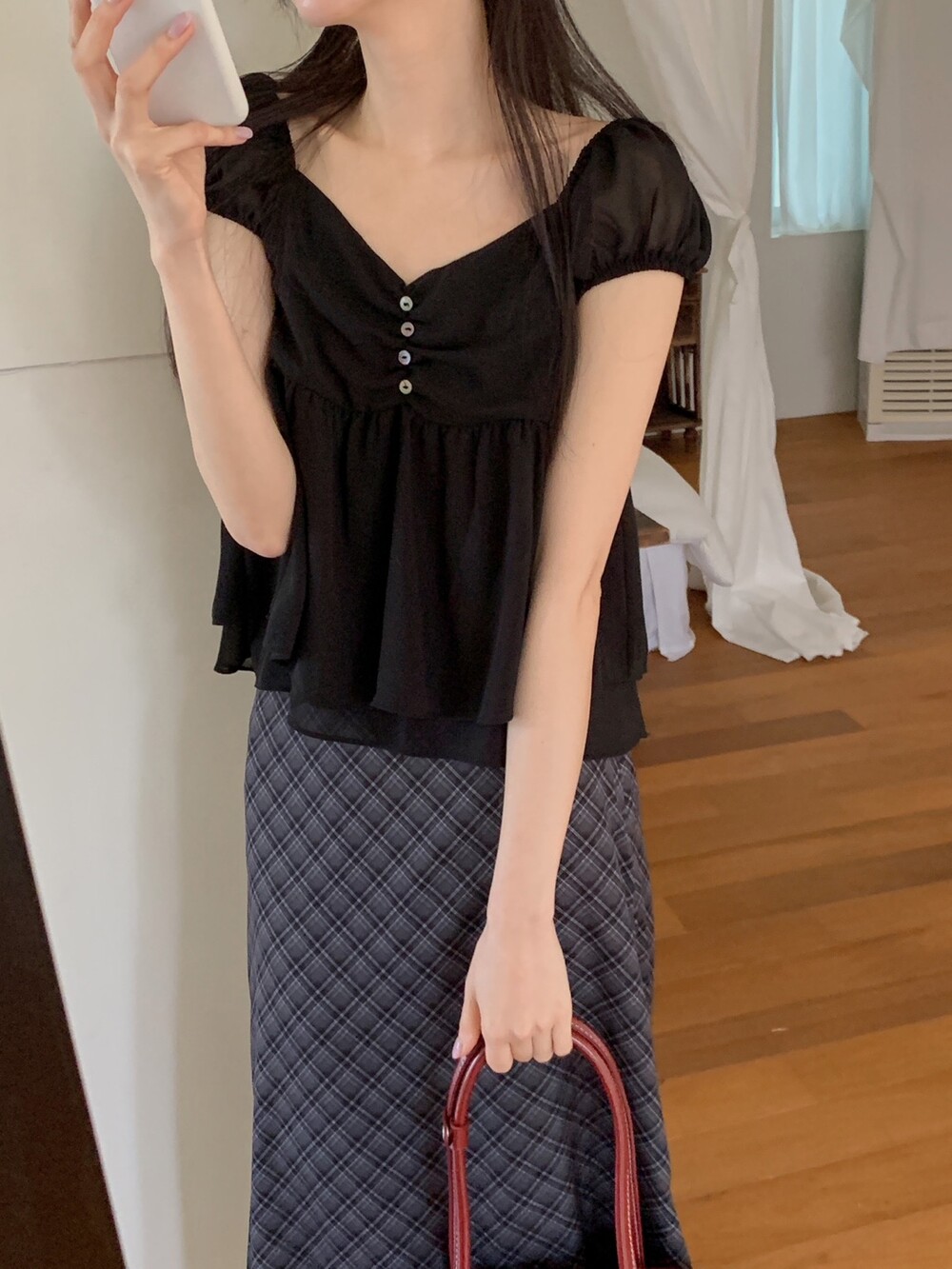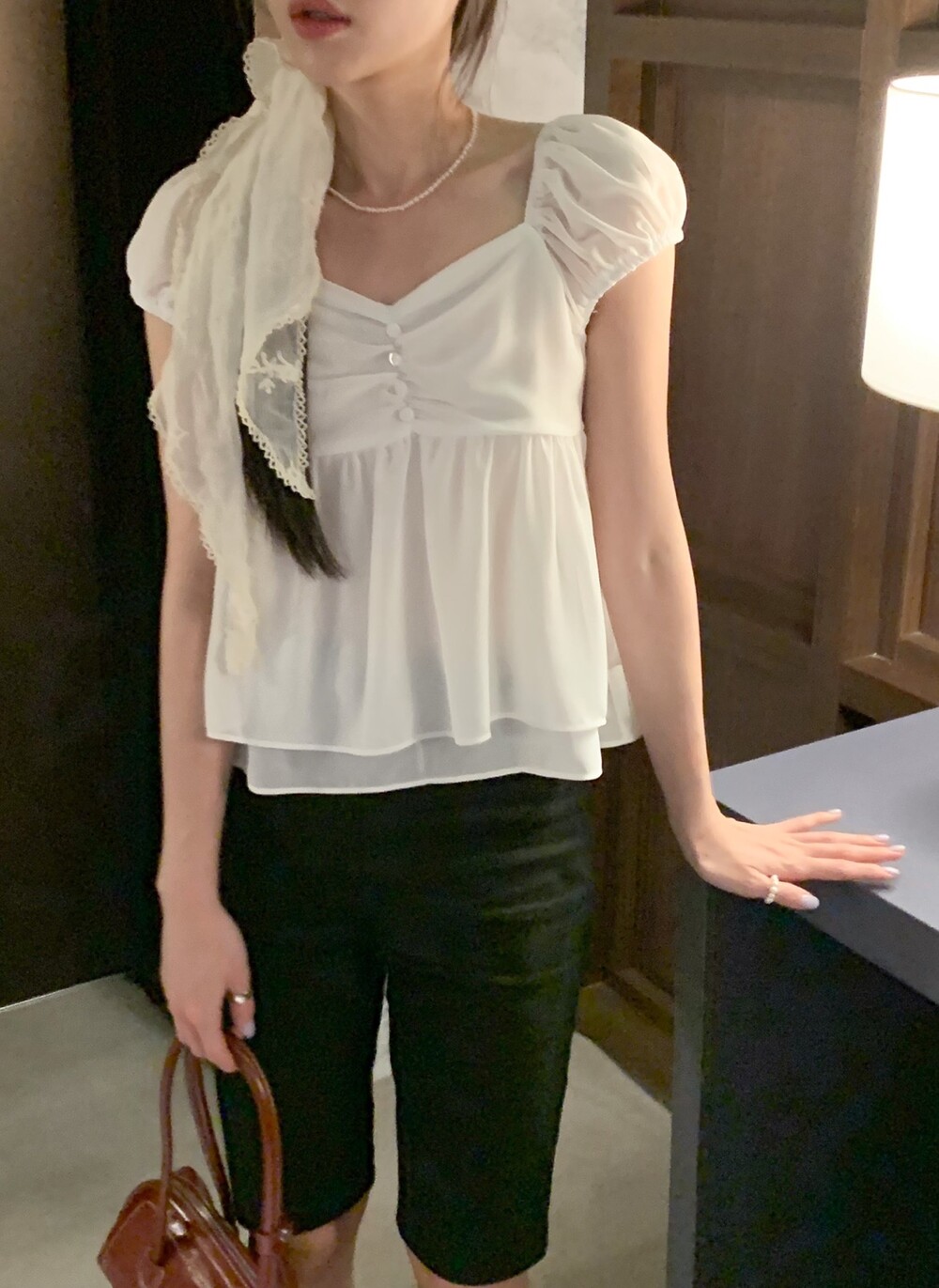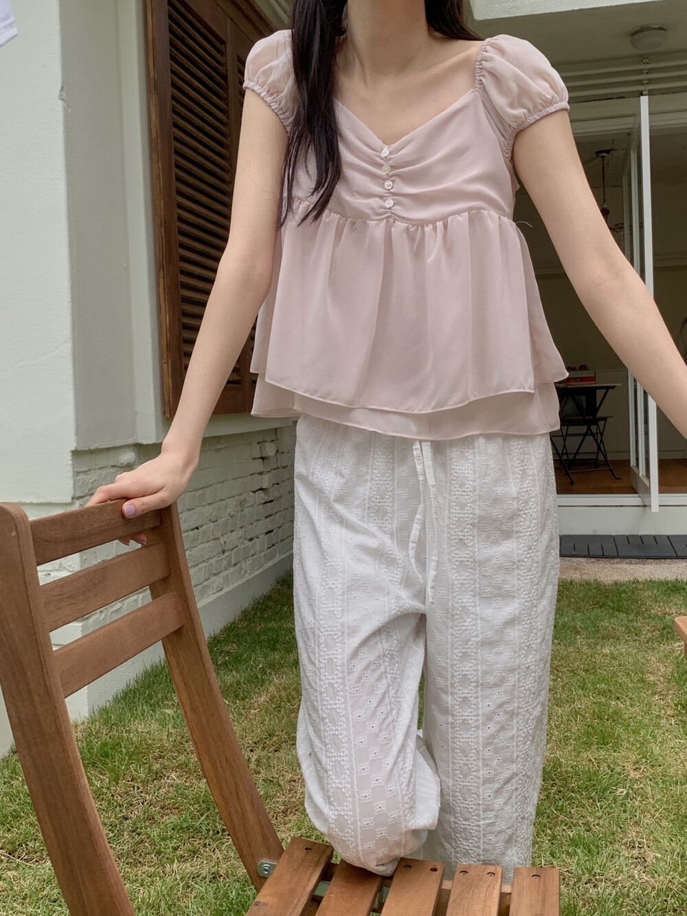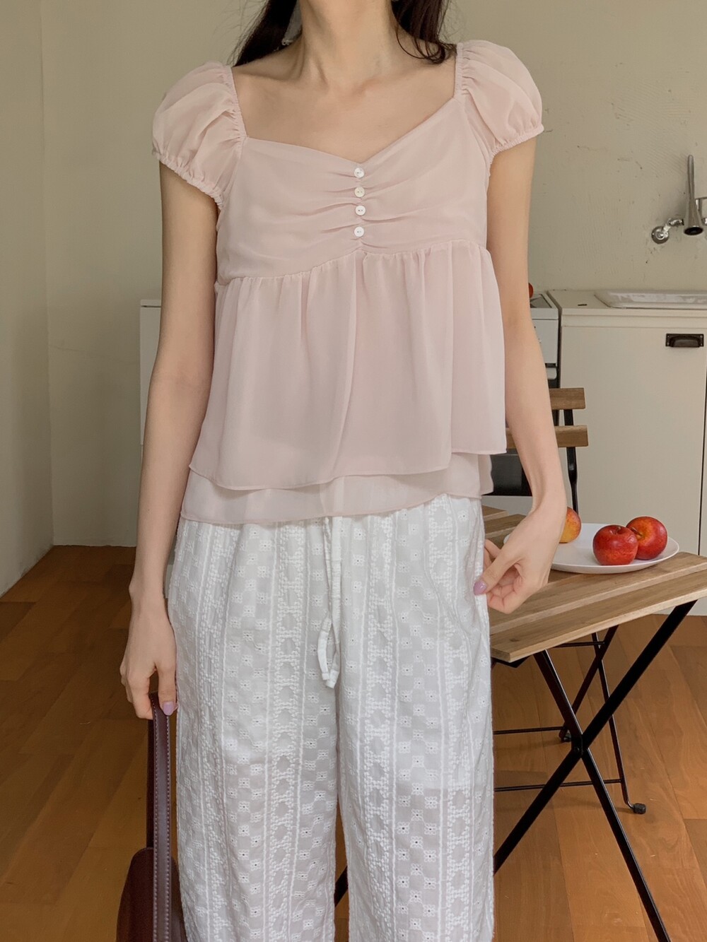 사랑스러운 셔링 디테일과 봉긋한 소매라인이 더 여리여리하게 보이게 해주는 웬디 블라우스 🪽