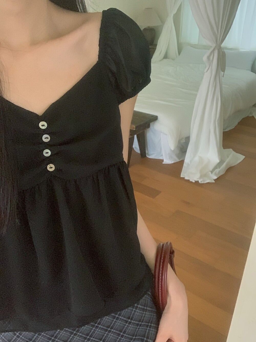 ( 또한 모두 수작업으로 이루어지기 때문에 셔링의 모양차이, 양쪽 퍼프 모양의 차이 등은 불량의 사유가 되지 않습니다. )